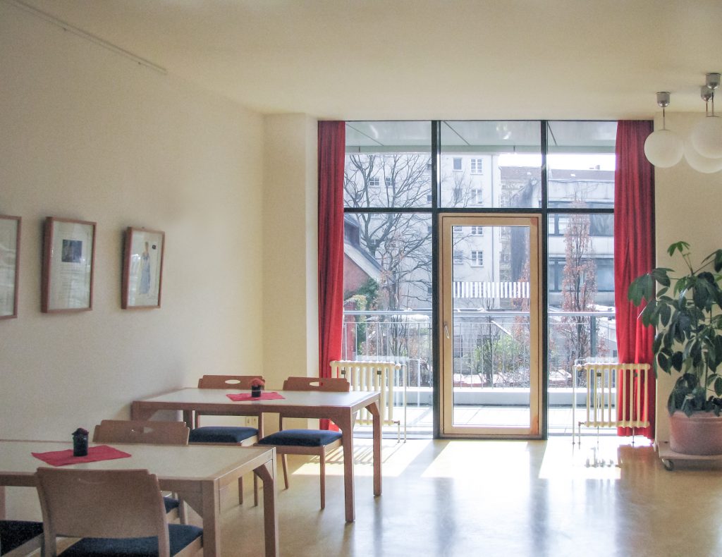 Die Funktionsräume der Mittelzone blieben in ihrer Nutzung und auch baulich erhalten. Für die Neubelegung weiterer Funktionsräume im südlichen Stationsbereich wurden geringe bauliche Maßnahmen erforderlich. Hier befinden sich nun ein Therapieraum, ein Arztzimmer, die Pflegekoordination und ein Patientenaufenthaltsraum. Das Oberarztzimmer wird im Norden zwischen Achse 14/ 15 vorgesehen. Insgesamt umfasst die Station 22 Betten.