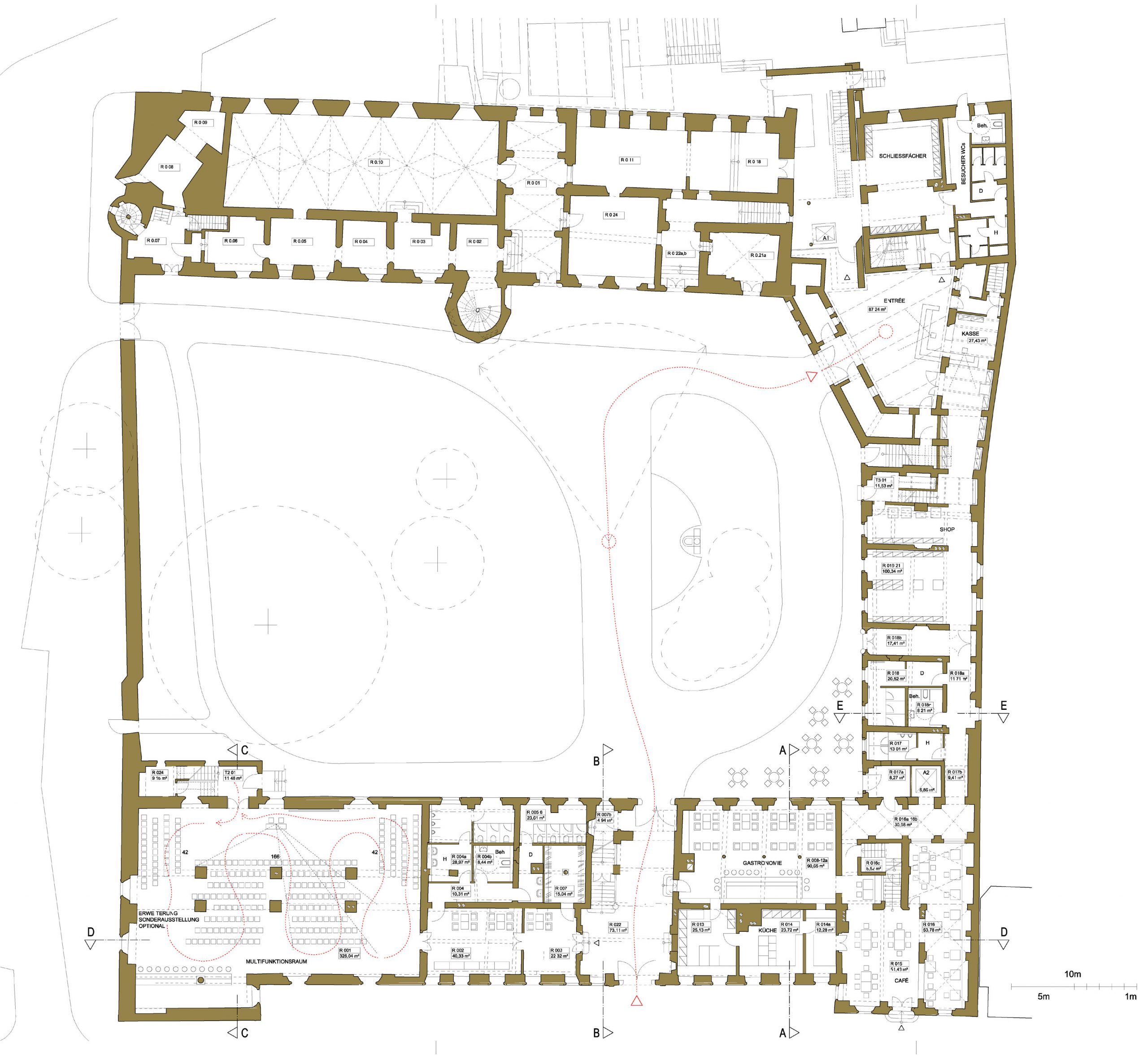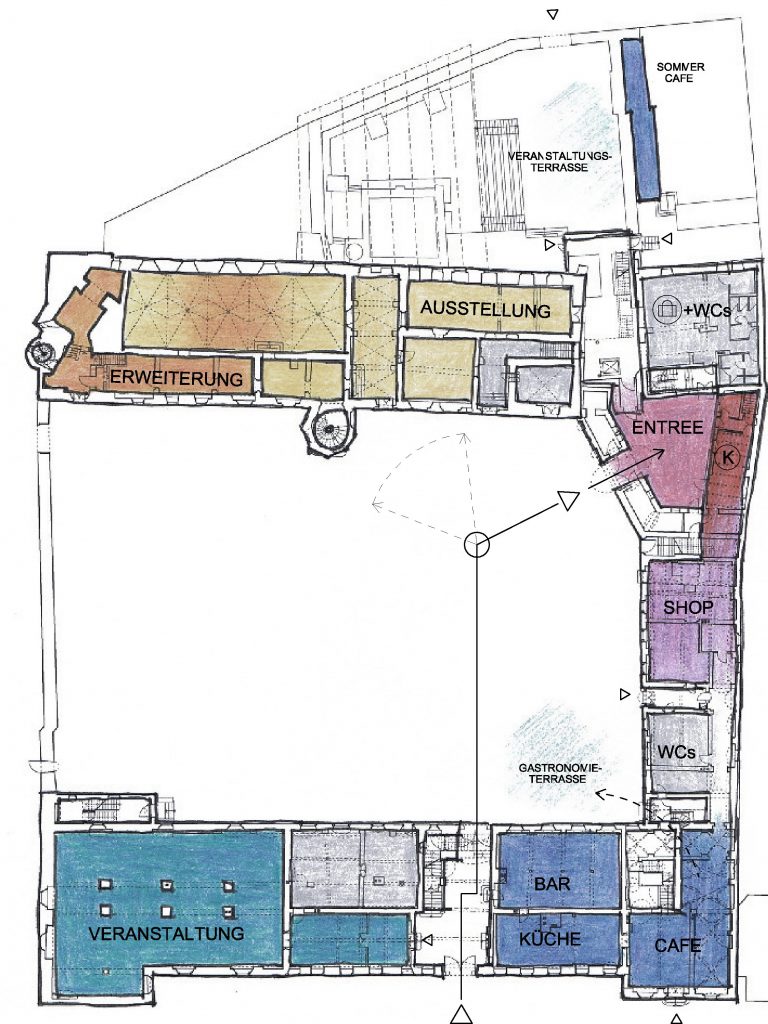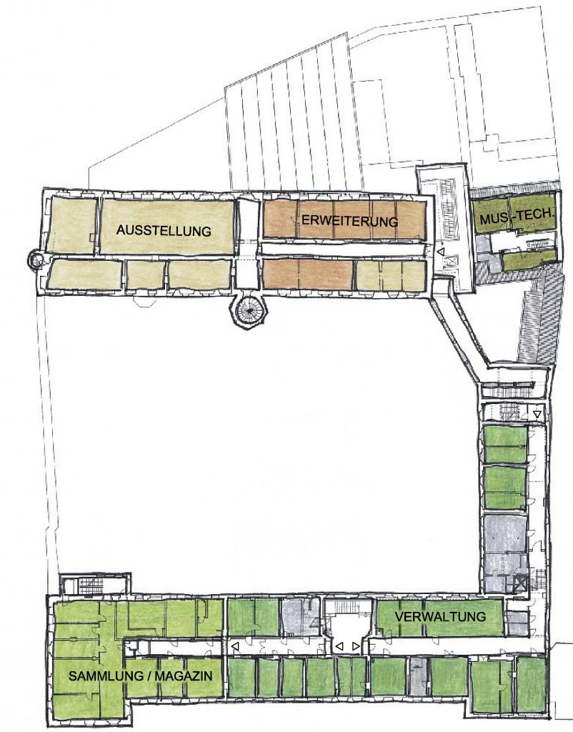 Zentraler Bestandteil des architektonischen Entwurfsansatzes ist es, neben der sinnhaften Lösung der Erschließungsfragen auch einen denkmalgerechten Umgang mit der Bausubstanz entwurflich zu berücksichtigen und zu organisieren.