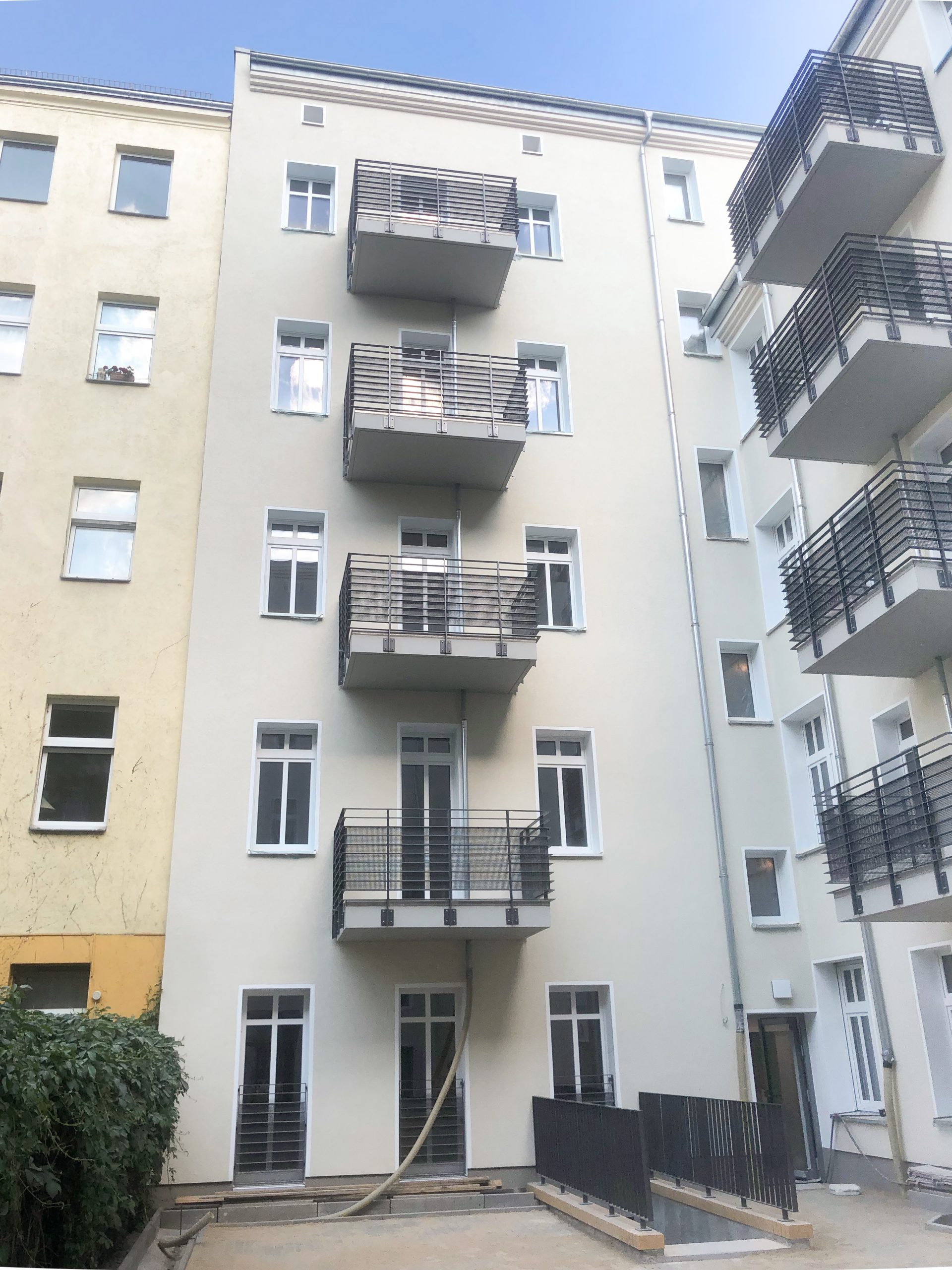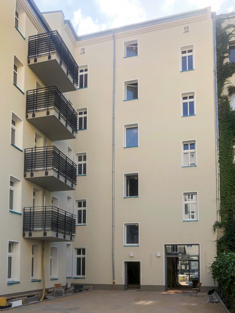 Ausführungsplanung zur Kernsanierung eines typischen Berliner Altbaus mit 34 Wohneinheiten im Vorderhaus, Seitenflügel und Hinterhaus. Dazu erfolgt eine Erneuerung der Geschossdecken, der Dachstühle und der Balkone.